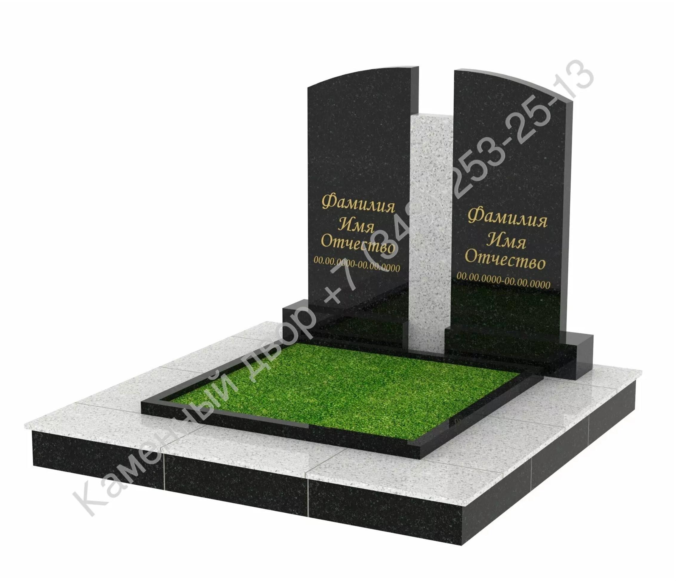 Каменный двор предупреждает, что 3D макет не является чертежом или проектом памятника, не является схемой к установке, это делается для того, что бы приблизительно показать, цвета, тона и композицию по размещению в шаблоне выбранного изделия.